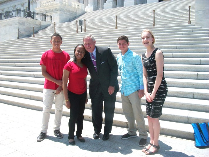 2017-2018 Grand Prize Winners Alizdair Sebastien Ray, Sam Kostiuk, Former State Librarian Cal Shepard, Angelina Bayrak, and Christina Haley Williams
