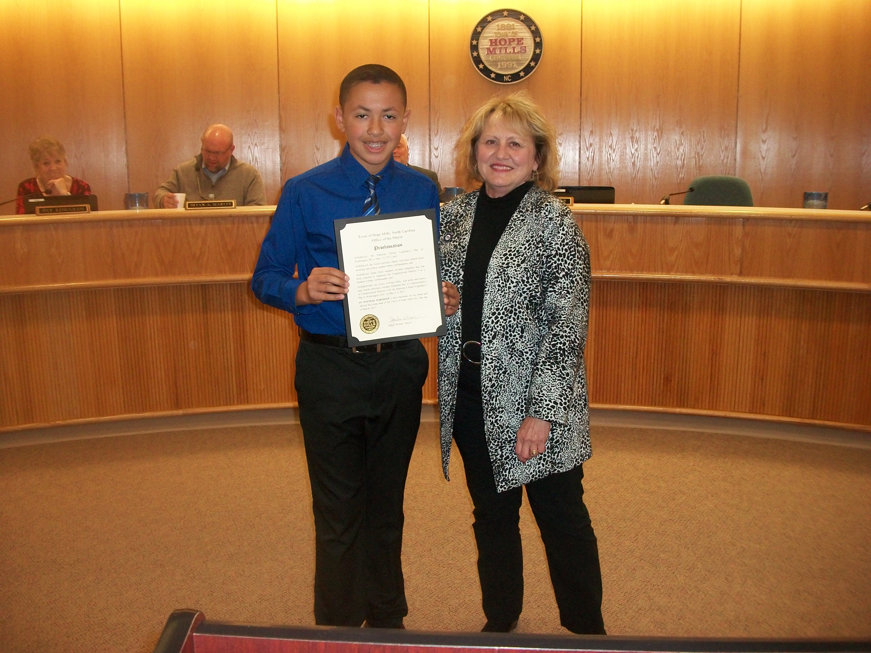 2017 Recognition to Mayor Warner to Alizdair Sebastien Ray